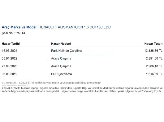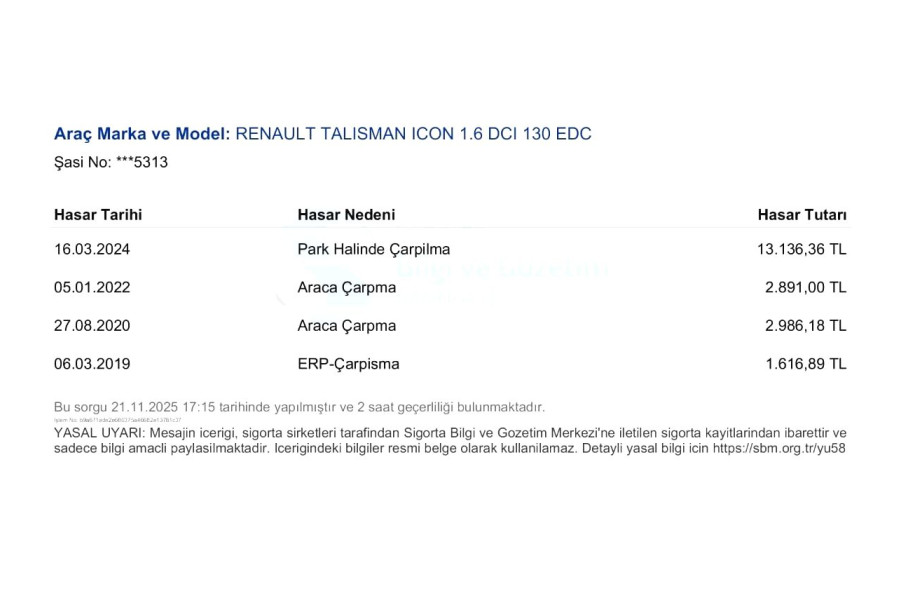 | Ağır Hasar Kayıtlı | Hayır |